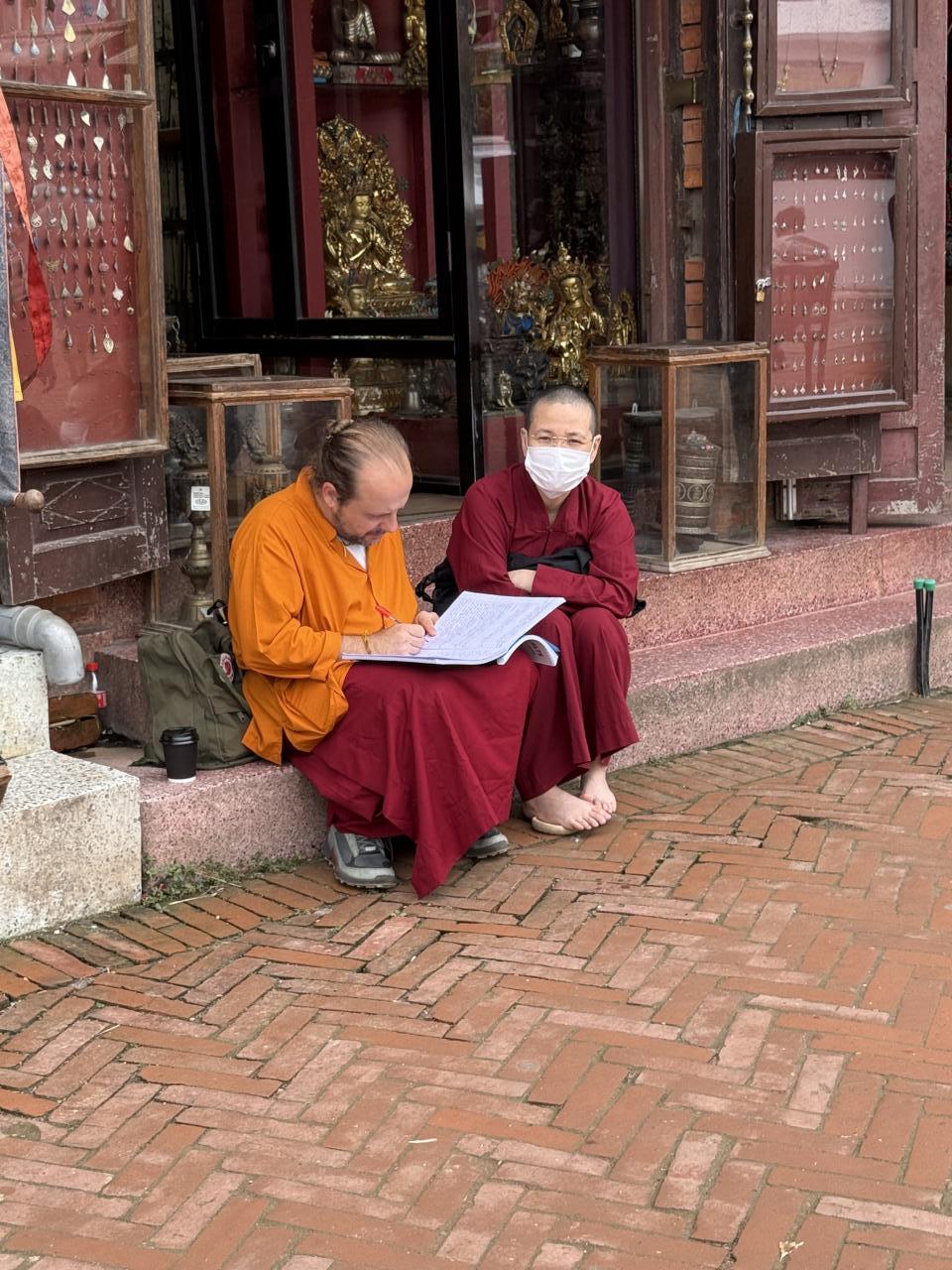 Этот человек задавал вопросы монаху (?) и тщательно что-то записывал. Я долго накручивала круги вокруг ступы, и все это время они старательно учились. Такие зайдествованные глубоко в своем учении, такие погруженные, что невозможно было не сфотографировать