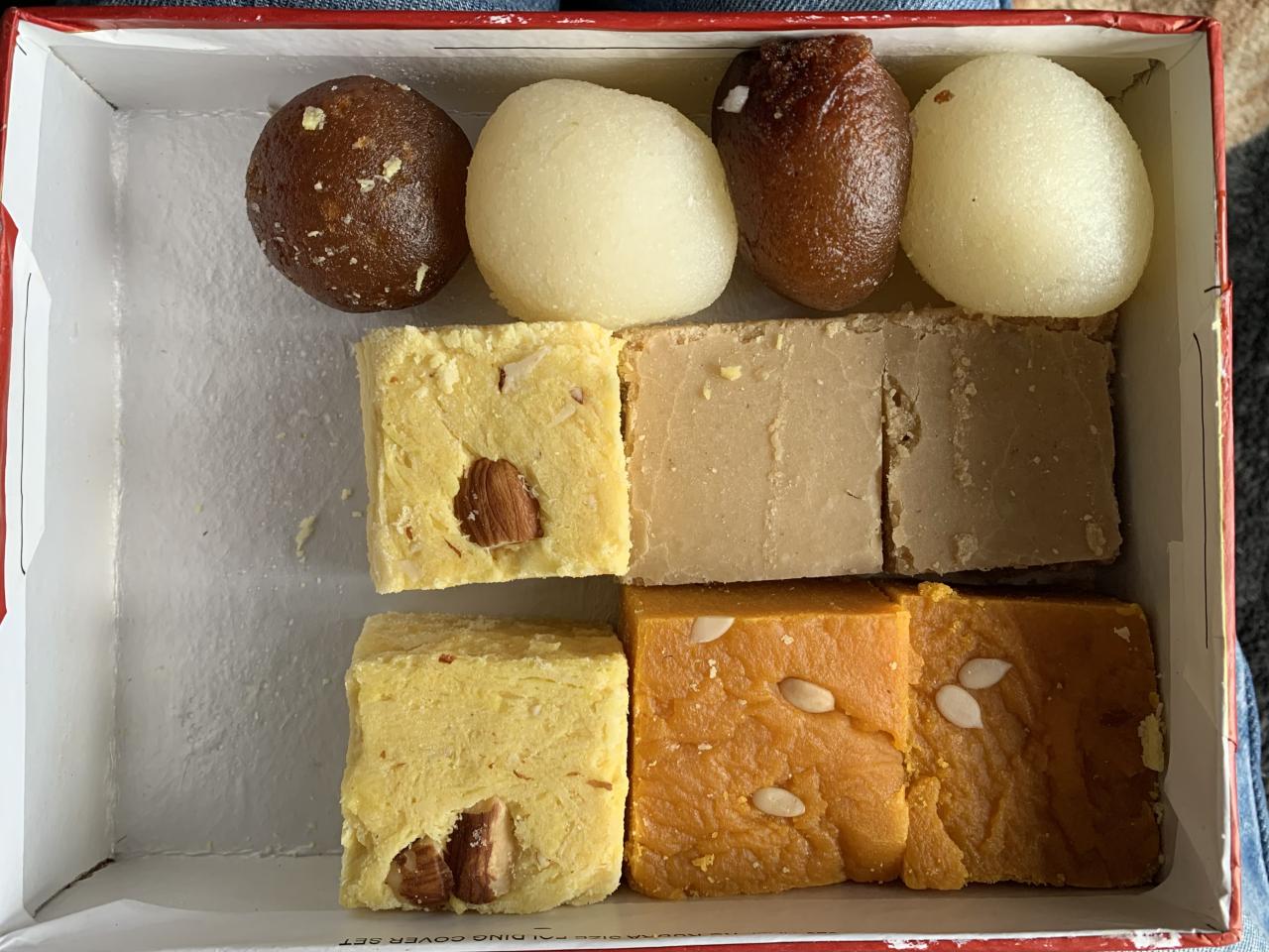 В торговых рядах на автостанции (если пройти чуть дальше - по левую руку) есть лавочка, где продают замечательные сладости, при этом всё чистенько, ни одна муха внутри витрины не летает, упаковка тоже как в лучших фирменных магазинах - очень рекомендуем! Расмалаи мы "заточили" сразу, остальное взяли с собой, чтобы не скучать в дороге - до Манди час пути. Ещё и деток угостили :).