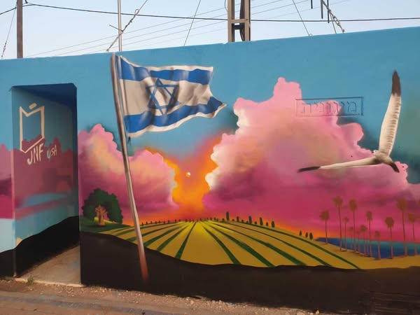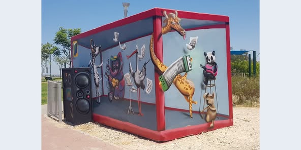 14 лет назад, после операции «Литой свинец», израильский граффити-художник Эльясаф Миара попросил у местных властей разрешения раскрасить эти серые коробки снаружи и внутри, добавить немного света и цвета посреди постоянных перестрелок и тревог. Только добавить в жизнь немного радости, больше ни о чем он не помышлял, разрисовывая убежища, каждое по-своему, ни разу не повторяясь.