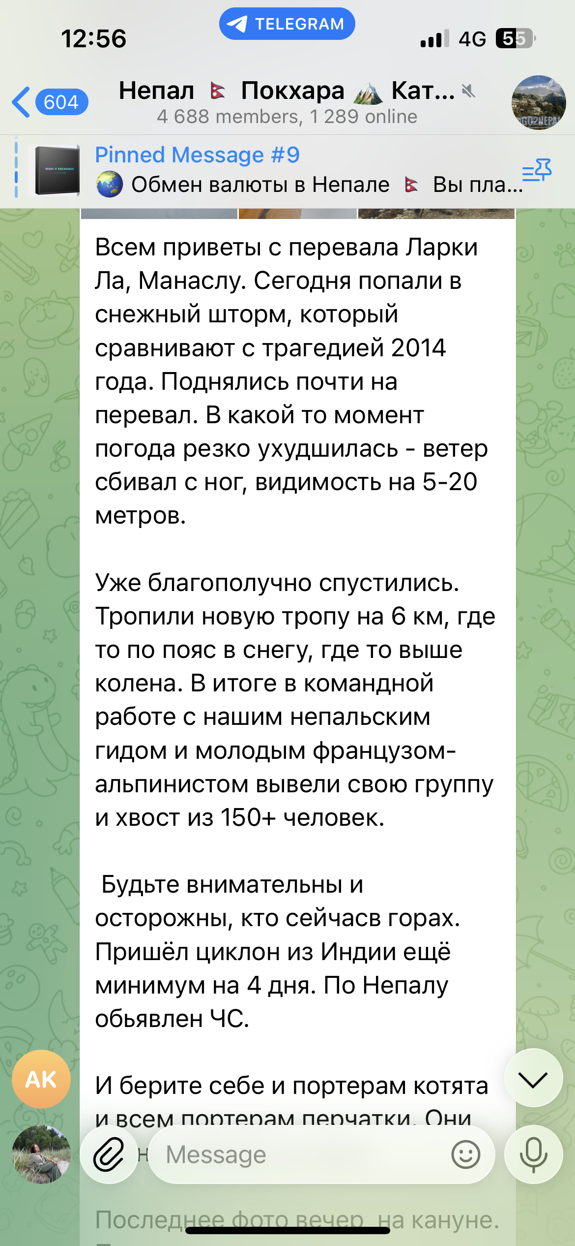 Я так понимаю, речь Манаслу треке, Ларке Ла. Ничего страшного им там действительно не угрожает, страховая права, это не страховой случай, просто много снега. Перевал проходим, с трудом, по снегу, но уже хорошо протроплен. Просто южным людям страшно, когда много снега. И в Дармасале очень аскетичные условия ночевки. Вот здесь пишут про то, что вчера прошли перевал https://t.me/go2Nepal/97070