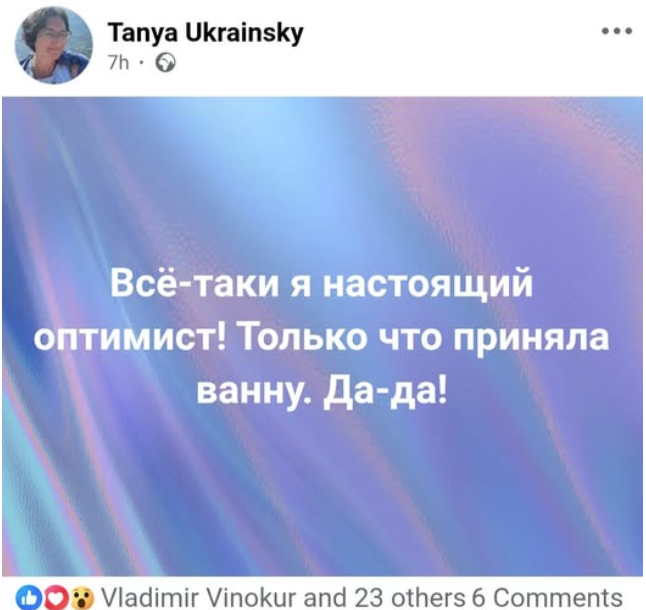 Именно об этом с иронией пишет моя добрая знакомая, известный туристический гид по Израилю и жительница Хайфы Tanya Ukrainsky. Без пояснений выше вы бы и не поняли, в чем проблема и почему для приема ванной нужно быть оптимистом. И смех и грех, что называется.