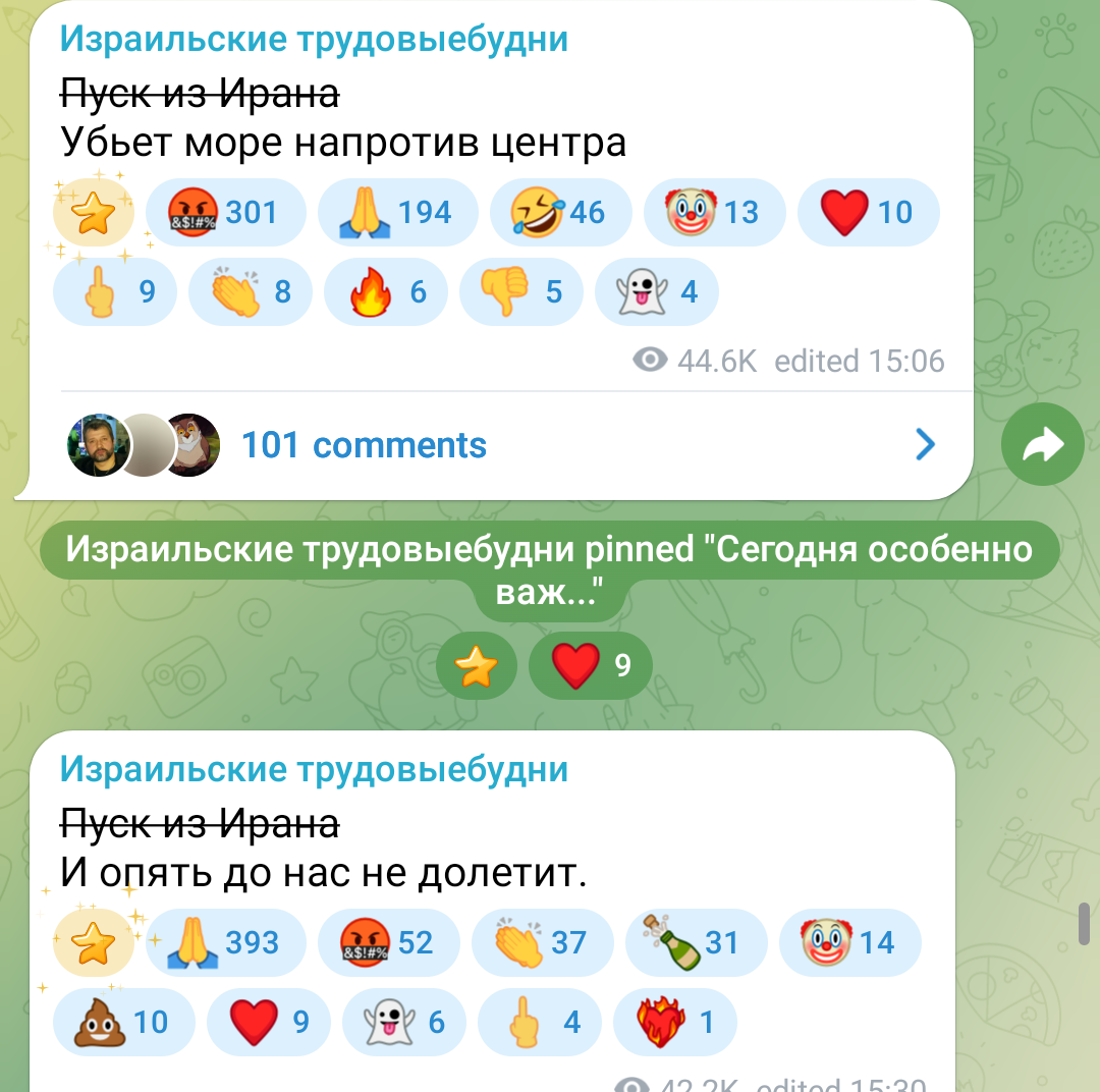 Из плохого: на удивление, этот "сезон войны с Ираном #2" с одной стороны - намного легче переносится, с другой - уровень стресса уже таков, что даже я уже на антидепрессантах, а многие знакомые начали курить и бухать. И мы с женой уже вполне серьёзно думаем о сваливании....