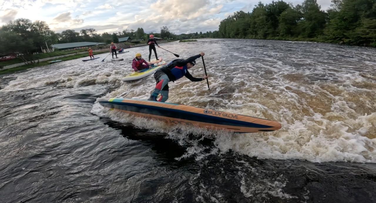 Я для себя это назвала закантовкой на нижнюю ногу, ты все время заваливаешь сап немного в сторону от мощи текущей воды - только так ты сможешь пересечь такую реку