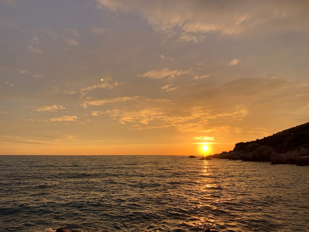 Проснулись на прекрасном пляже Изюм, одно из красивейших мест на треке. он довольно людный, так как сюда приходит дорога, но мы стояли подальше от людей. Солнце встает из-за горок. Первым делом - плавать, вчерашняя ночевка на болоте была отстойная в плане плавания и я, при всем желании, так и не смогла искупаться. Изголодавшись по морю, утром я купалась 3 раза. Вроде наплаваюсь, вылезаю и... опять иду в воду.