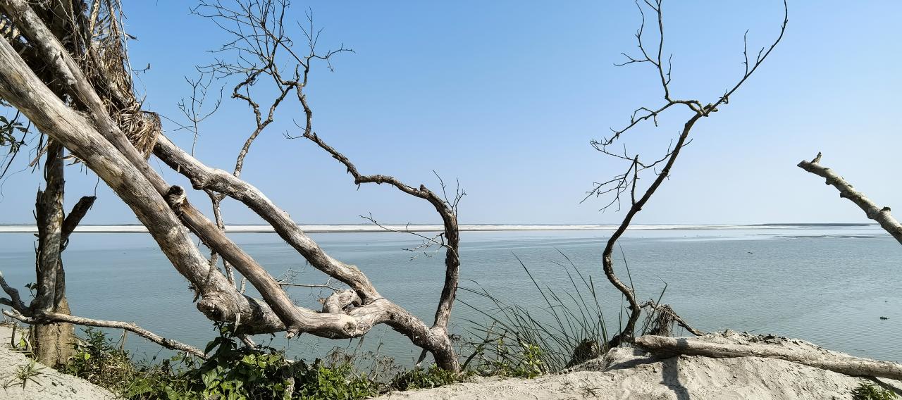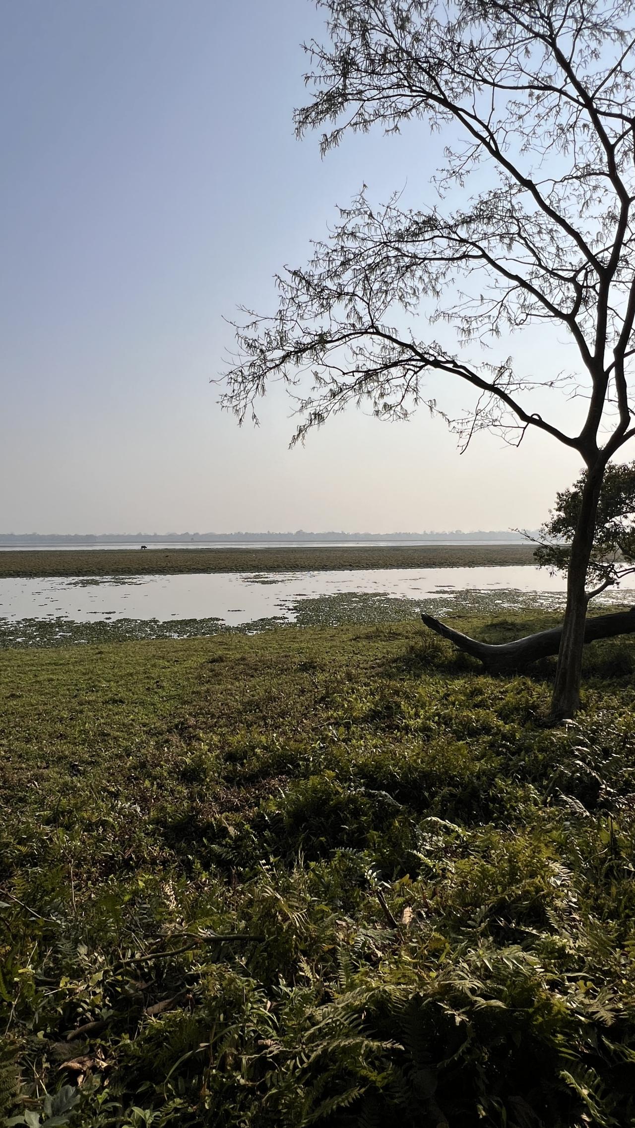 ....А вот волшебная встреча с Брахмапутрой - посмотрите на карту! Царица Ассама буквально обнимает западную Казирангу, и как только мы вылетели на открытое пространство, то увидели ее сияние.