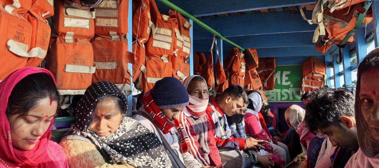 Мечта уступила место реальности: никаких поисков лодки — паромная переправа Джорхата - Нимати Гхар (Ninati Ghar) предоставляет вам воспользоваться регулярно курсирующими между Джорхатом и Маджули судами, которые со стороны похожи на полузатонувшие баржи.