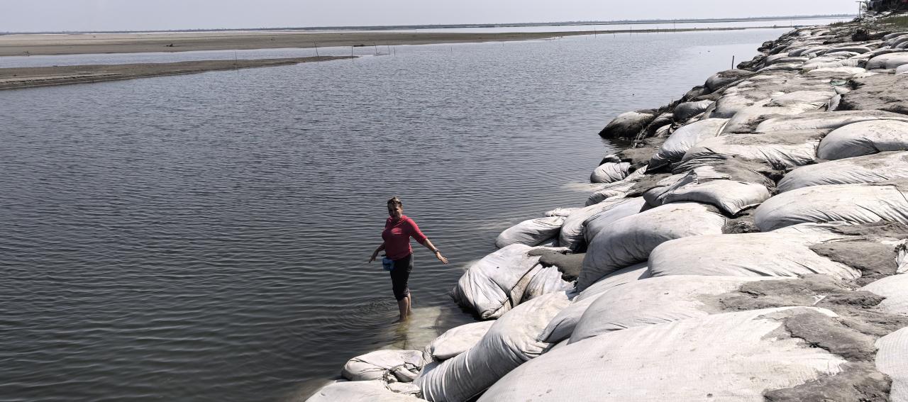 Я прикинула расстояние от причала до своего гнезда, которое свила тоже на береговой линии — оказалось, что что это не более 7км, и на следующий день пошла гулять берегами Брахмапутры, вернее берегами ее рукавов. После сезона дождей это пространство заполнит вода, но в конце февраля я гуляла среди заводей, которые образовали большие и маленькие островки, и ойкая, когда мои ноги начинал засасывать зыбучий песок, по топкой поверхности перебегала с острова на остров.