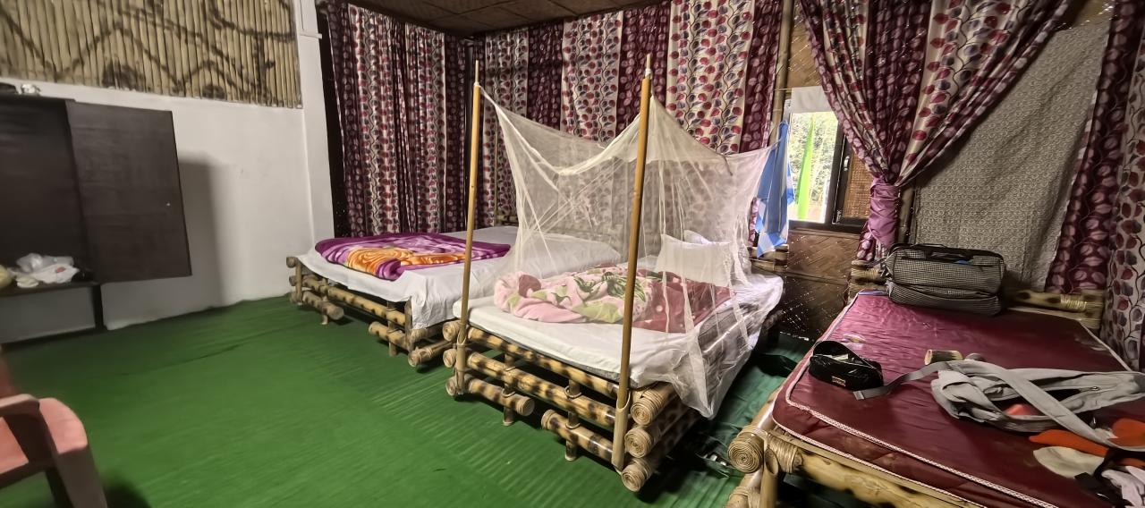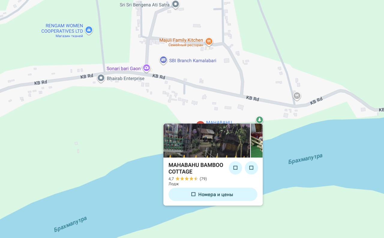 Поначалу я собиралась приехать в Гарамур и заселиться "как все", но в автобусе стала изучать карту острова, и нашла немалое количество других гостевых домов. Один из них особенно привлек мое внимание: Mahabahu Bamboo cottege— хоумстей, расположенный на рукаве Брахмапутры. И никаких других слов, кроме признательности его гостеприимным хозяевам и самой себе, что не поленилась поискать какое-то отличное от массового спроса жилье у меня нет.