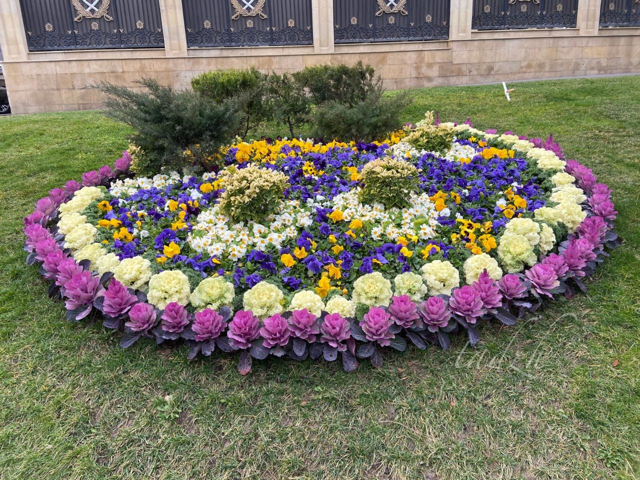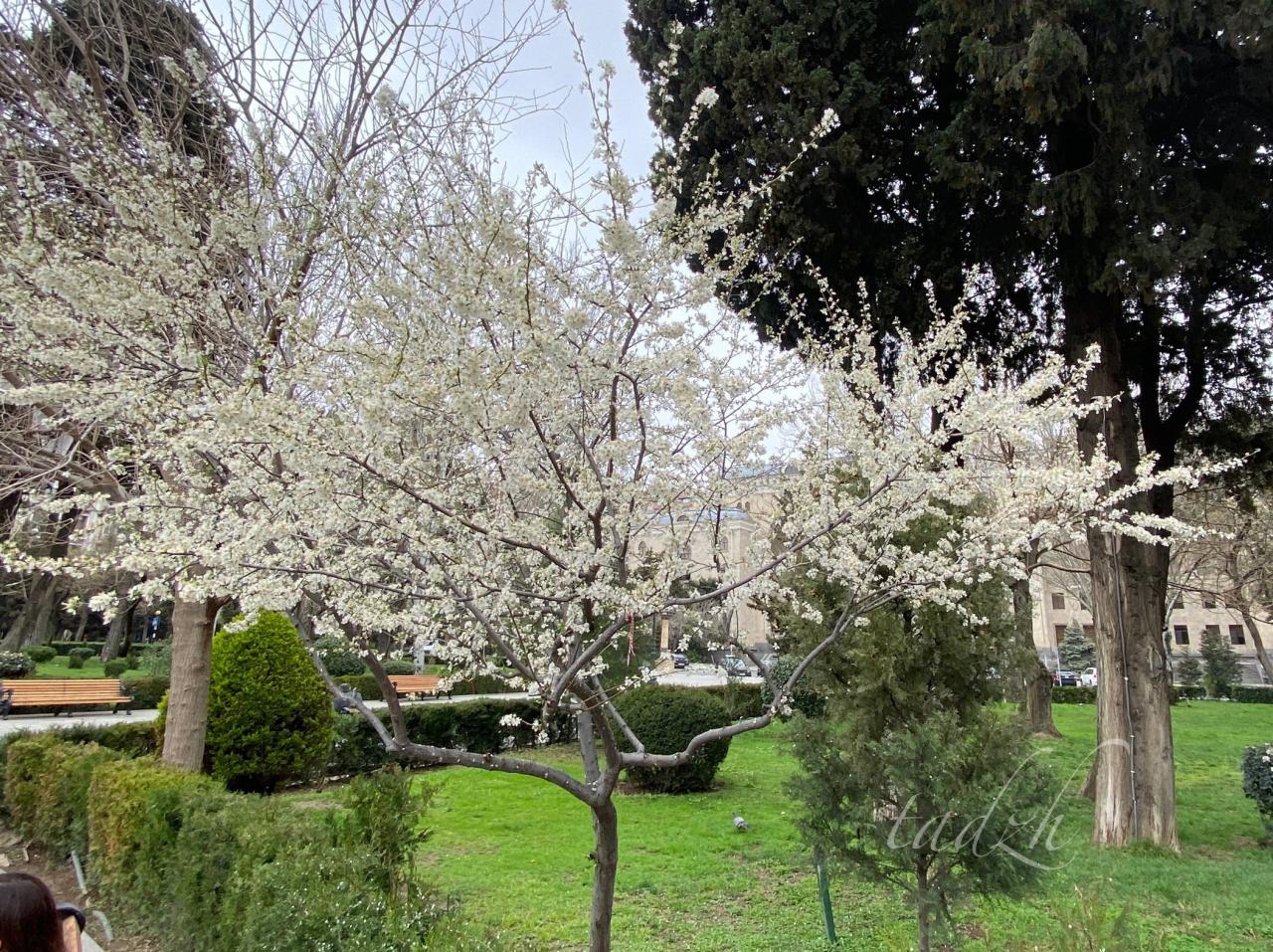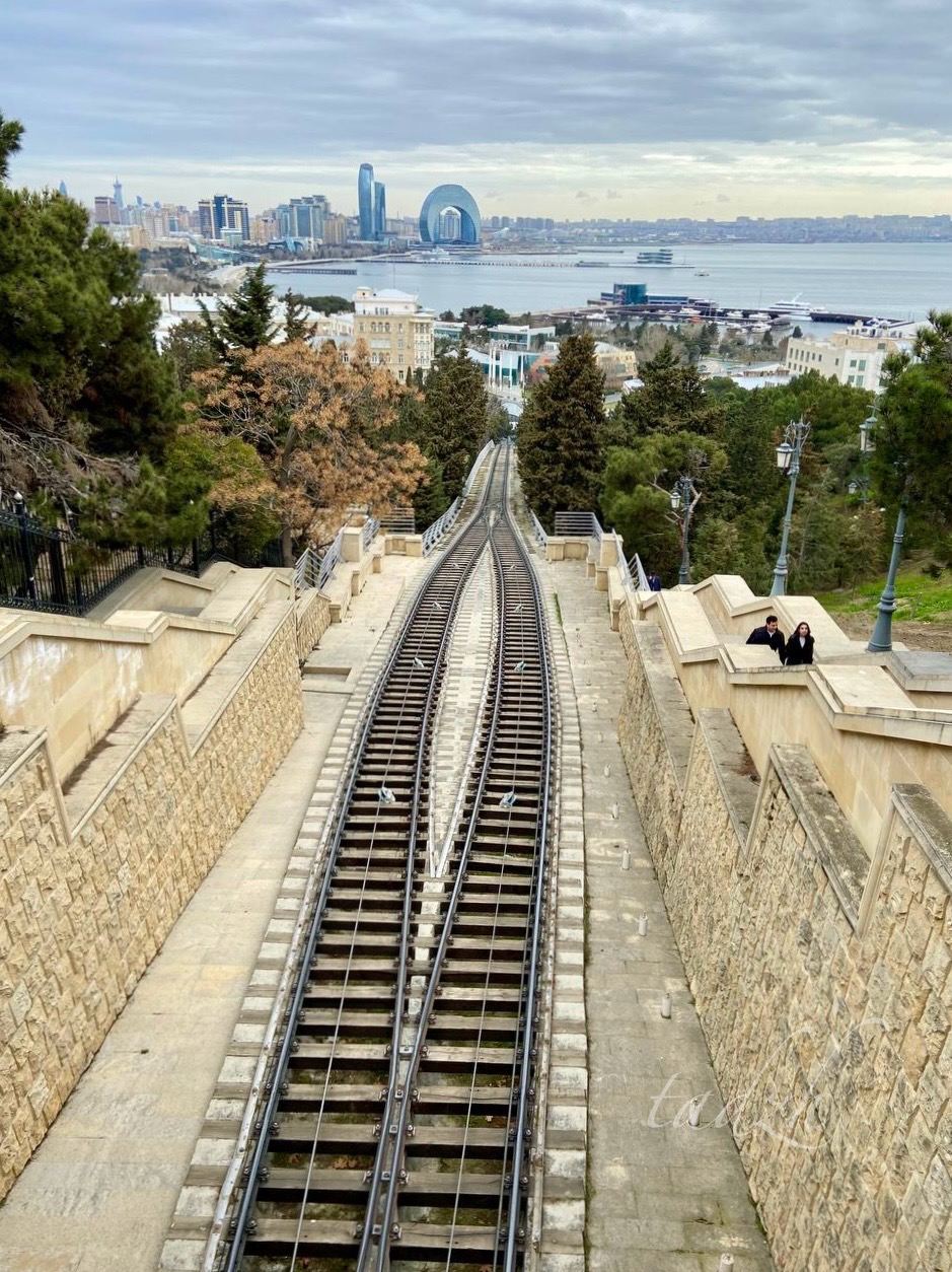 С горы открываются прекрасные виды на город. Там есть обзорные площадки, можно погулять по дорожкам среди хвойных лесов. Вообще, хвойные растения преобладают в Баку. Иногда даже хочется чего-то разрежающего эту однотонную зелень. Возможно, природа ещё просто просыпается, и все яркие краски будут позже, хотя кое-где клумбы уже пестрят примулами, декоративной капустой и ранункулюсами :).