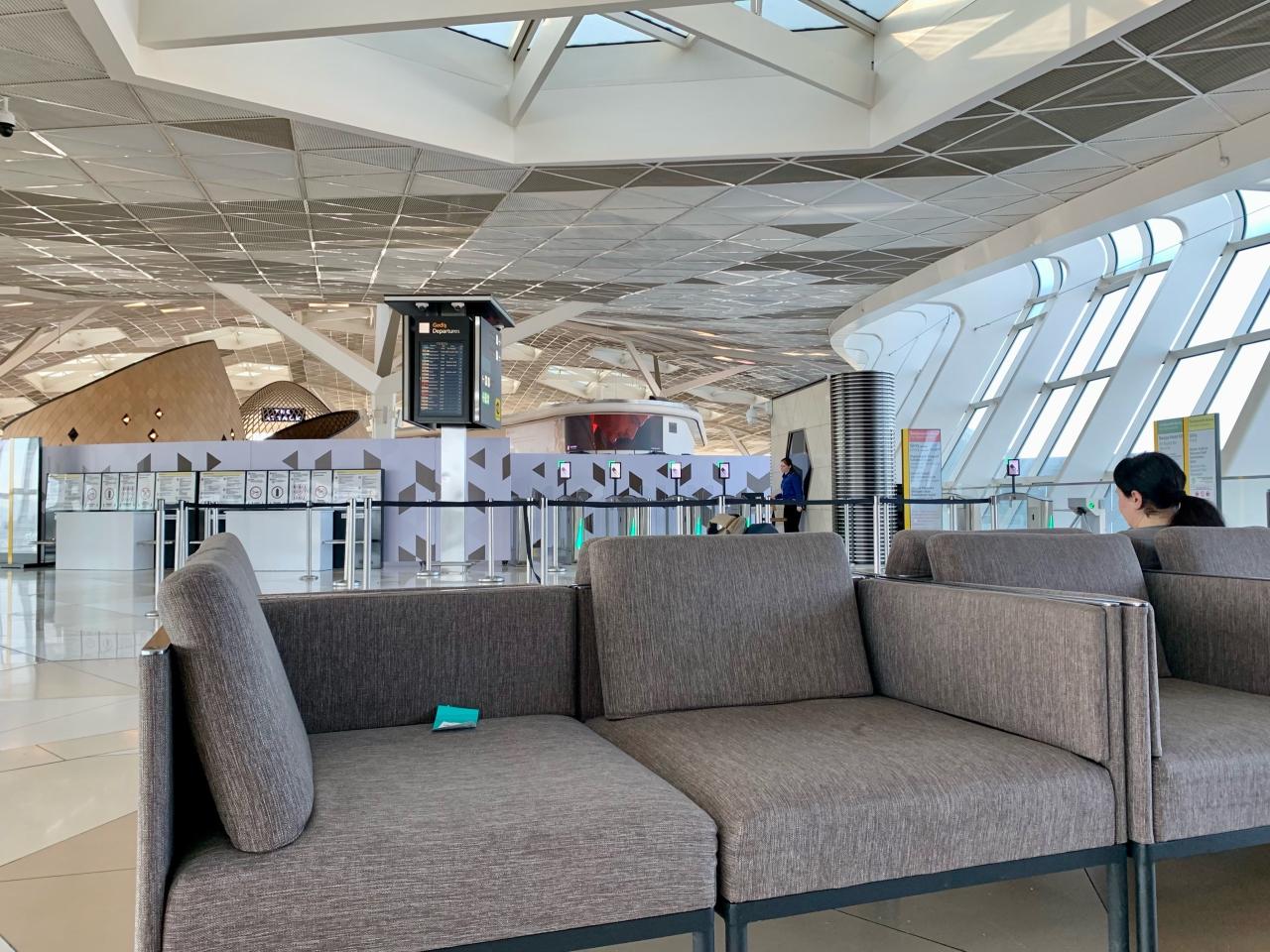 если у вас осталось еще куча времени до самолета, а вы уже в аэропорту, то, возвращаясь из города, поднимаетесь вот по этому эскалатору на третий этаж и там сразу будут мягкие диванчики, на которых можно удобно растянуться и поспать с комфортом, а прямо за ними - паспортный контроль, после которого вы уже не найдёте такого лежбища - только кресла. Так что советую не торопиться проходить в зону вылета, а отдохнуть, как мы и сделали во второй наш приезд в Баку по возвращении из Дели, когда находились по торговому центру.