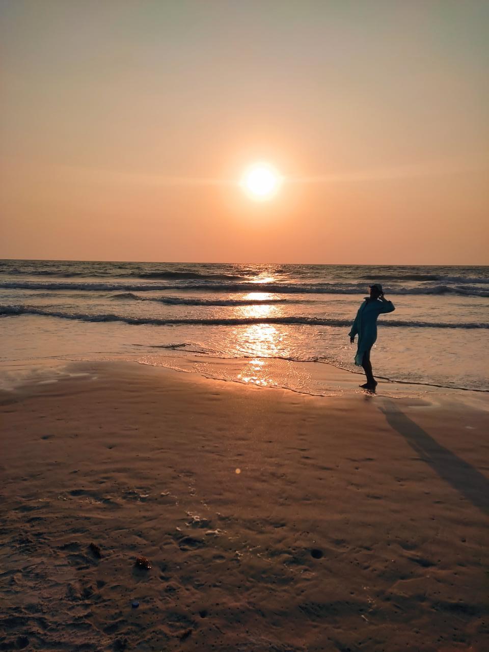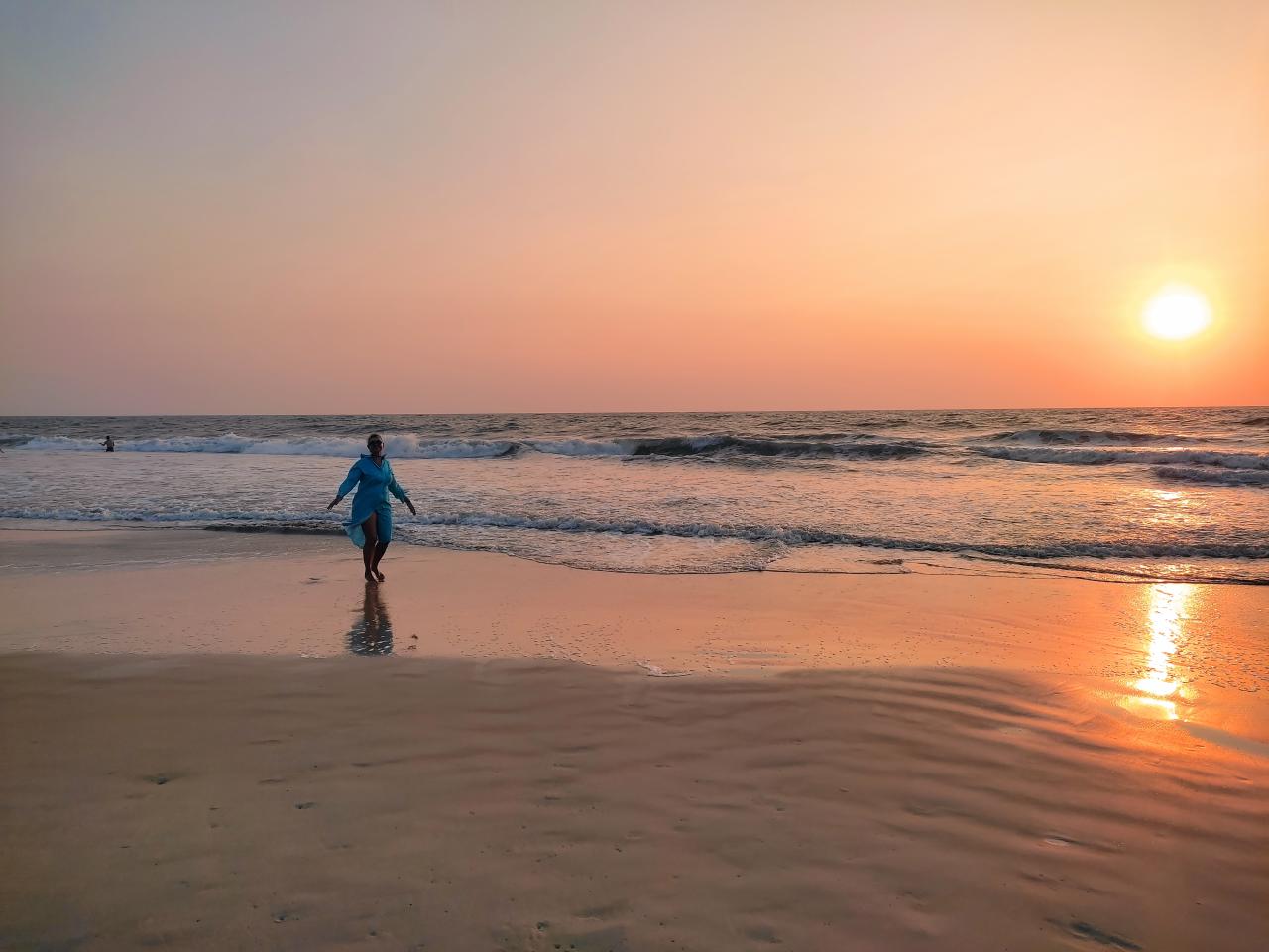 Прогулка по берегу моря  от рыбацкого поселка Моборс рыболовной флотилий на реке к пляжу на карте обозначен как Бетул, до можно доехать на местном автобусе ходят регулярно где то раз в полчаса, двадцать мин, и потом по берегу до Бенаулима 13 км. По дороге купаться, валяться на песочке, пить фреши в щеках, или спортивно шагать на закат