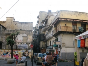 Неаполь единственный и неповторимый, совершенно безумный город, есть легенда: когда Бог раздавал всем земли, неаполитанцы опоздали на дележку, и им ничего не досталось. Тогда Господь подарил им кусочек рая, но чтобы жители не сильно зазнавались, у итальянцев других провинций родилась поговорка: «Неаполь был бы прекрасен, если бы не неаполитанцы». Здесь мотоциклисты не надевают шлемы, чтобы не испортить прическу, а автомобилисты придумали себе майку с диагональной полосой, чтобы не пристегиваться ремнем безопасности. Неаполь грязный и дикий, люди в нем живут сегодняшним днем, ведь завтрашний день непредсказуем, рядом Везувий, плана эвакуации, говорят местные, нет, многомилионный город не возможно весь вывезти. Мы познакомились в интернет-кафе с девушкой-украинкой, она сказала "Неаполь - это помойка Италии, в прямом и переносном смысле!".