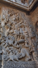 Слева - огненный диск -Чакра, вращающийся на указательном пальце правой руки Вишну, символ дарующего жизнь Солнца и универсального Разума. Чакрой Вишну поражает незнание - так что запомните этот символ! Но я видела Чакру и слева - например, в Беллуре и Халебиде.