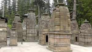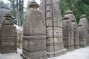 Ярко запомнилась мне встреча с этим старинным шиваистским храмовым комплексом! Вот предстваьте: на берегу небольшой речки, протекающей среди сказочного кедрового леса, вы вдруг увидите россыпь старых каменных храмов, крохотных, аккуратных, похожих на осыпавшиеся шишки с окружающих сосен, или на семейку крепеньких белых грибков-боровичков. Я даже и не припомню больше ни одного индуистского храма, выстроенного посреди самого настоящего леса!