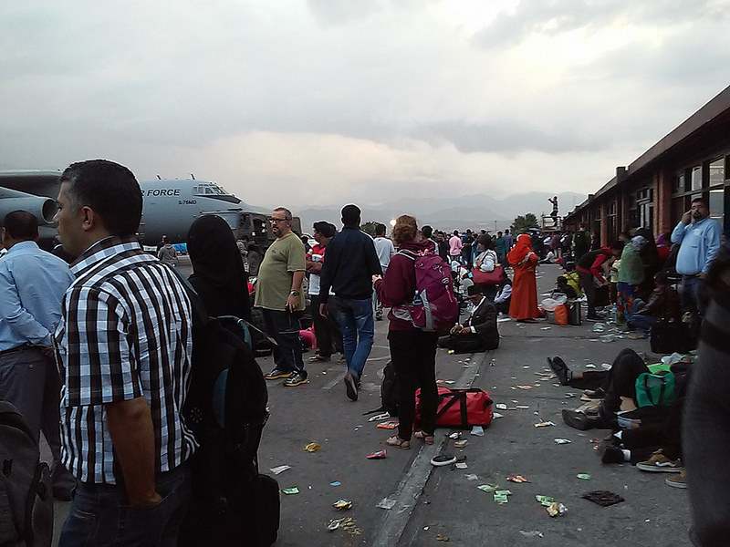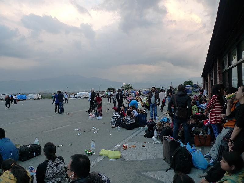 Двери на летное поле были открыты и снаружи тоже были люди. Наверное это сделали для безопасности, чтобы, если еще будут толчки, люди могли выбежать из здания. Когда приземлялся самолет, его пассажиры встречали его радостными криками и бежали к нему через летное поле. В общем, полная анархия. Извините за большое количество однотипных фото, выкладываю все, пусть будут для истории.
