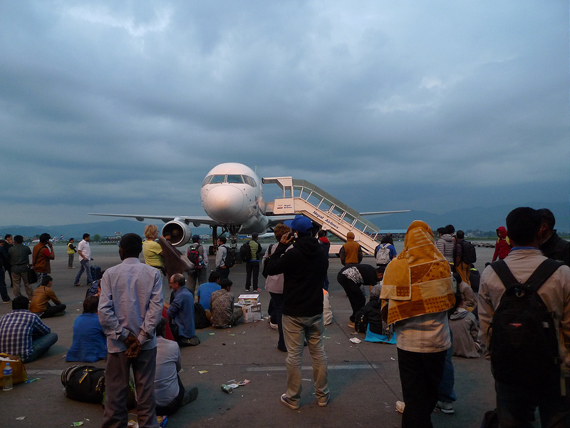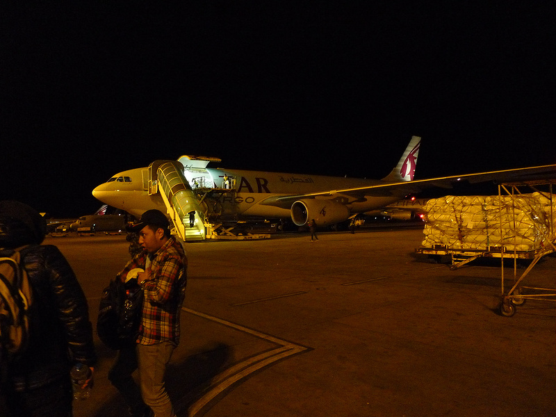Мои сестры отслеживали мой рейс по флайтрадару и смсили мне, что мой самолет кружит вокруг Катманду и не может сесть из-за грозового фронта. Стемнело, прилетел грузовой самолет Катаров, наверное с гуманитарным грузом. Интересно было наблюдать, как его разгружают.