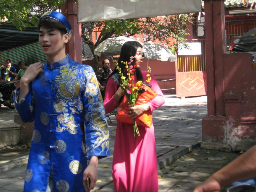 Это юноша. В тот день встречалось много пар в национальных одеждах.