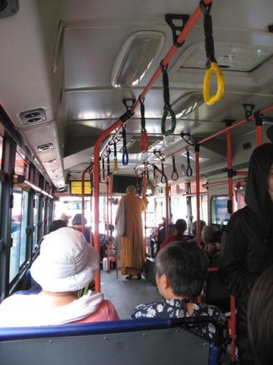 В Пномпене были всего половину дня, поэтому посмотреть даже главные достопримечательности не успели. Королевский дворец был закрыт (позаглядывали через забор), посмотрели местный променад. К холму мадам Пень пришли в полной темноте. Прогулялись к ночному базару, прикупили чудные штанишки - балахонистые, очень тонкие и приятные к телу. Выспались и с утра пораньше на автобусе (уже сидячем) отправились в Сиемрип. (фото из автобуса)