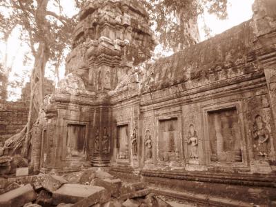 Мы аккурат к рассвету рванули в Та Пром. там не было ни единого человека(видимо, все встречали рассвет в Ангкоре), и место меня просто унесло - никогда такого не видела, тишина. пустота. храмы в развалинах и гигантские деревья!
