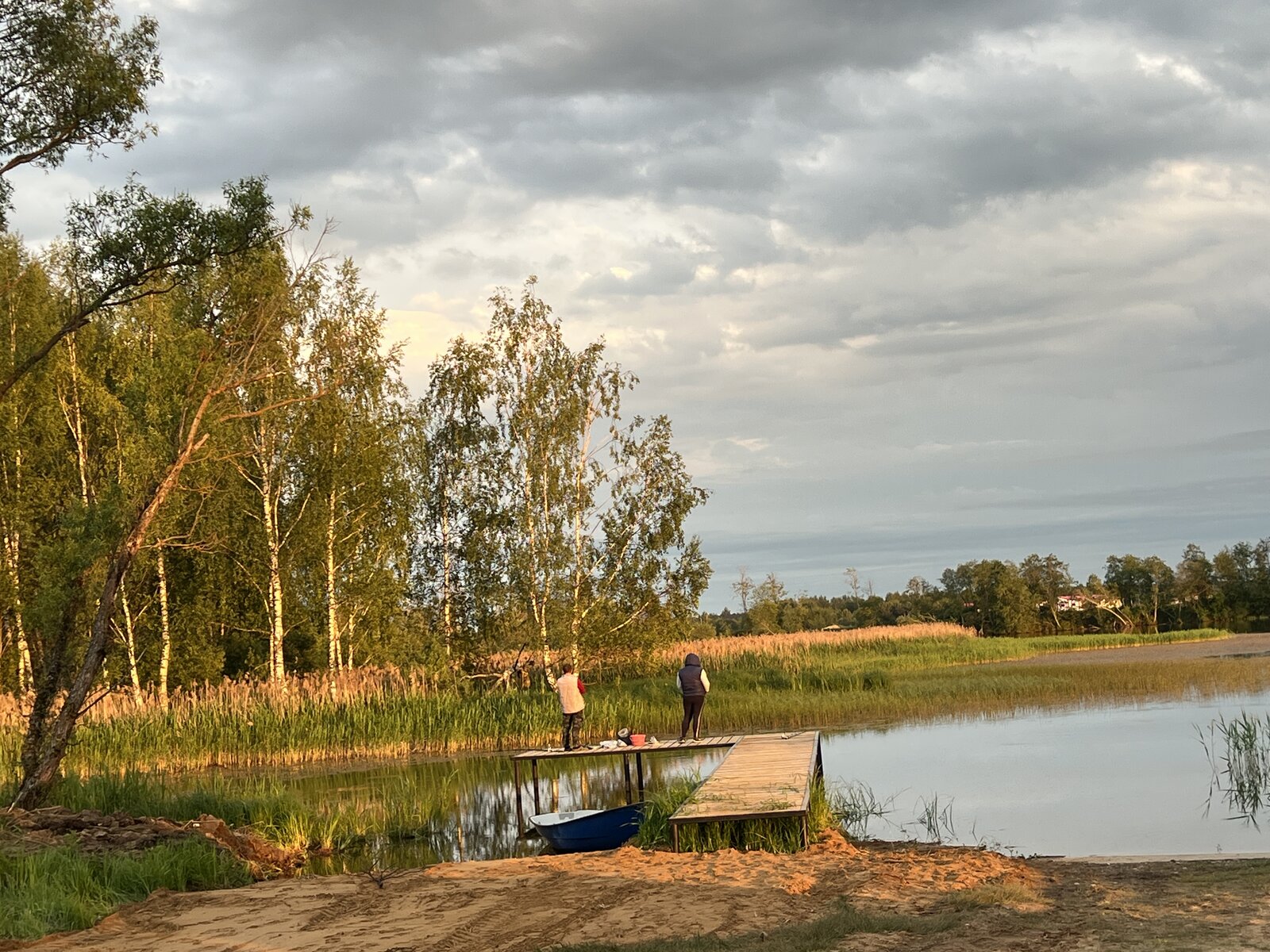 Рыболовно-охотничья база Титеево расположена на берегу водохранилища в красивом сосновом лесу и неподалеку от села Филенино. Готовясь к поездке я довольно долго просчитывала варианты с предварительным ночлегом в регионе, нашла много устаревшей информации (в интернете представлены гостиницы и базы, закрытые уже пять лет назад). Но упорство и труд всю ложную инфу перетрут, и вот я заселяюсь в бревенчатый домик со всеми удобствами, ставлю машину у своего крыльца, осматриваю место спуска к воде, ужинаю и заваливаюсь спать.