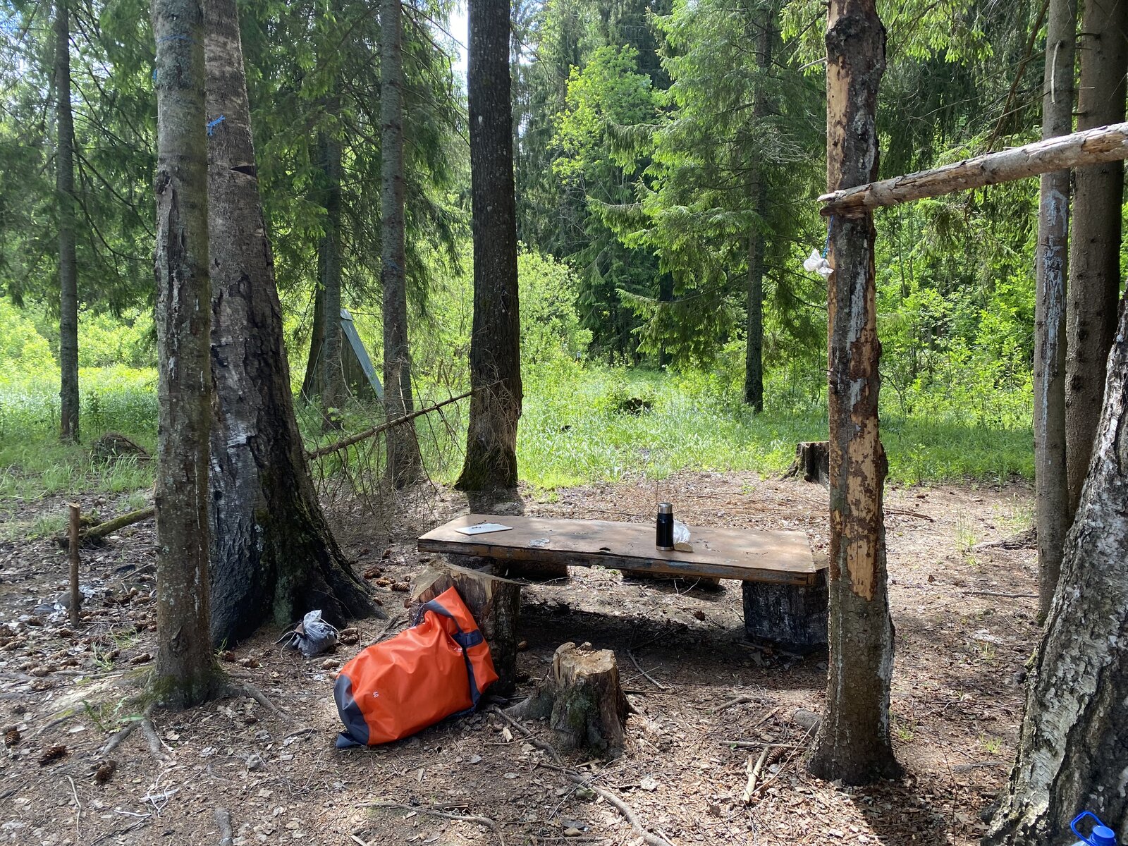 Заночевала я в 1 км от Горбова. Моя машина ждала меня у Горбовского моста, и я рассчитывала утром позавтракать, неспешно собраться, влегкую доплыть до машины и уехать домой до жары. Мост находится в 500 метрах после старого гидроузла — в прошлом году я выходила на берег перед гидроузлом, но ради любопытства подошла, оценила реку под ним, и поняла, что легко бы могла тут проплыть.