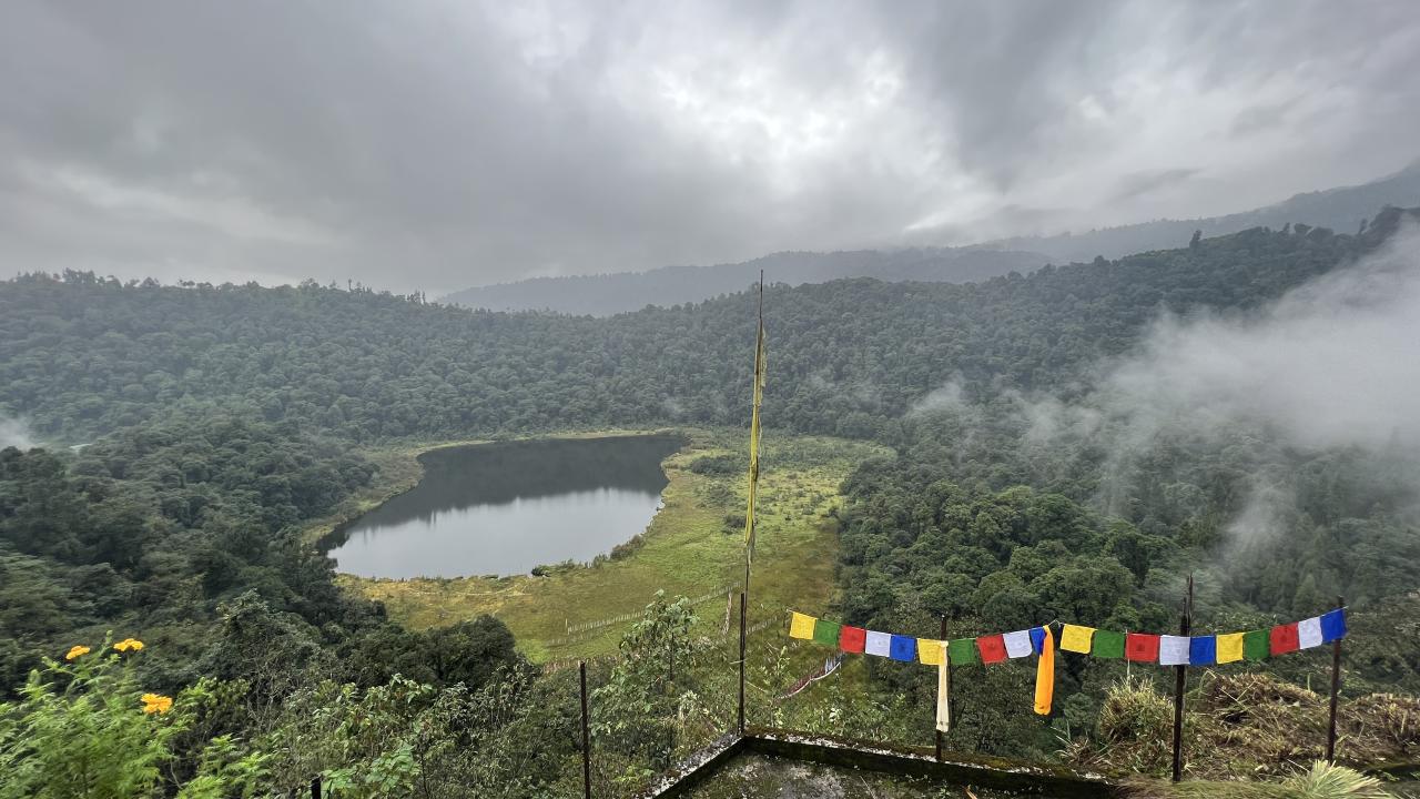 Священное озеро Кечапери лежит в обрамлении зеленых холмов в неглубокой камерной долине, больших снежных гор отсюда не видно. Не сморя на это высота над уровнем моря у берегов озера почти одинакова с высотой нижнего Пеллинга: 1840 м. Долина эта камерная даже по меркам малонаселенного Сиккима, особенно хорошо это видно вечером и ночью: огоньки жилых домов рассыпаны по долине очень редко.