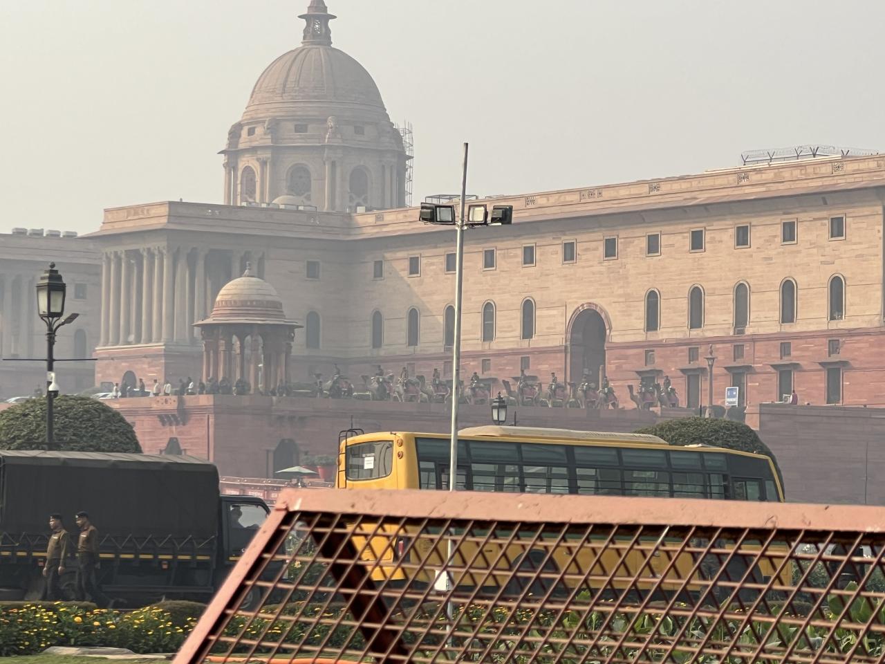 Приехали в Дели ко Дворцу Президента, но подойти не можем: идет репетиция ко Дню республики