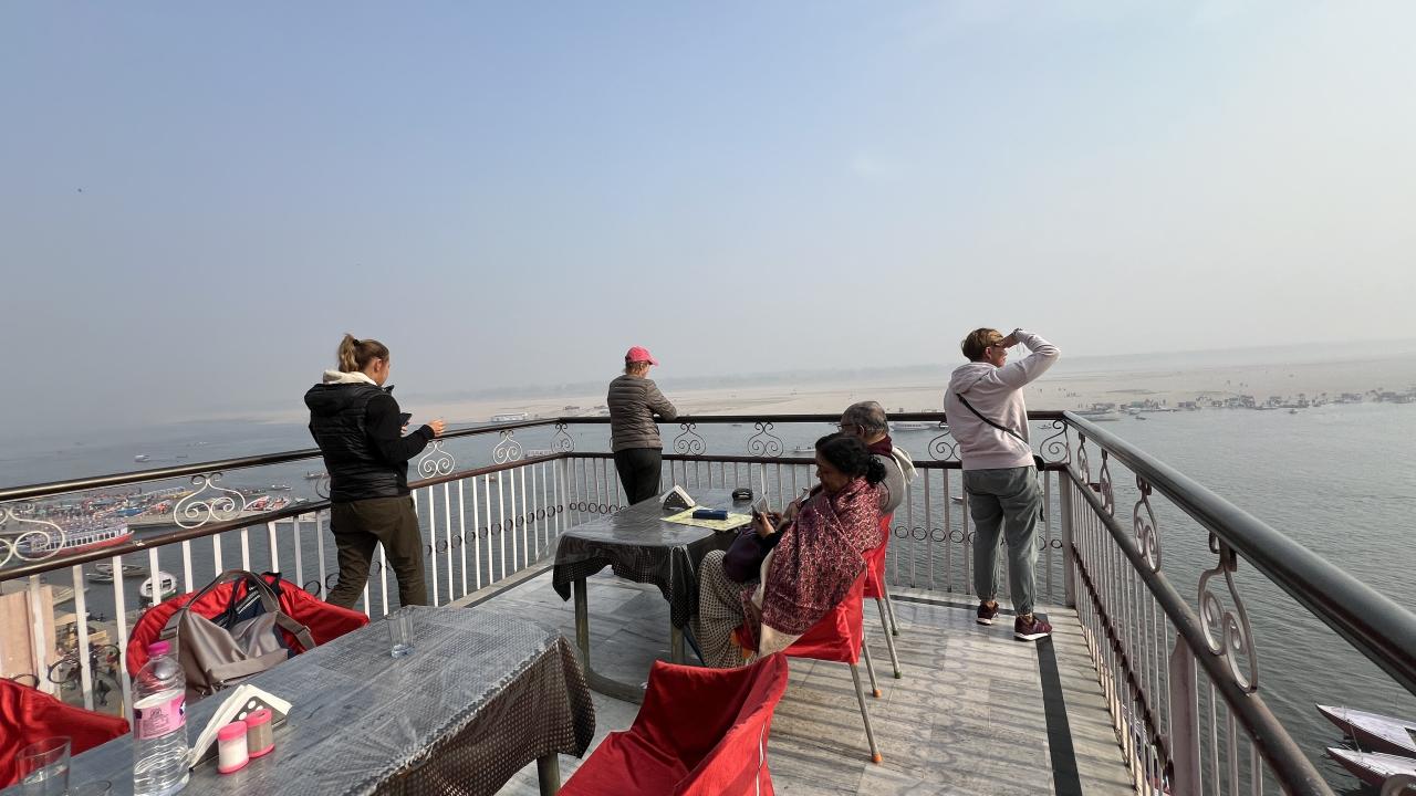 Номер в отеле Алка с общим туалетом и душем с видом на Гангу, в ресторане только вегетарианские блюда, о чем я забыла предупредить.