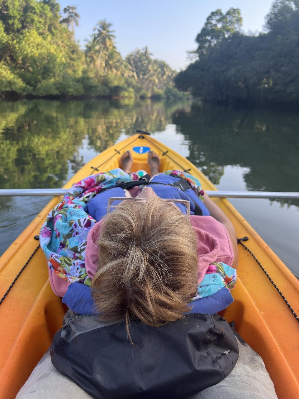 Мы плыли на каяке с Леночкой, она преимущественно лежала, а с парного качка раздавались завистливые крики «На ее месте должна быть я»