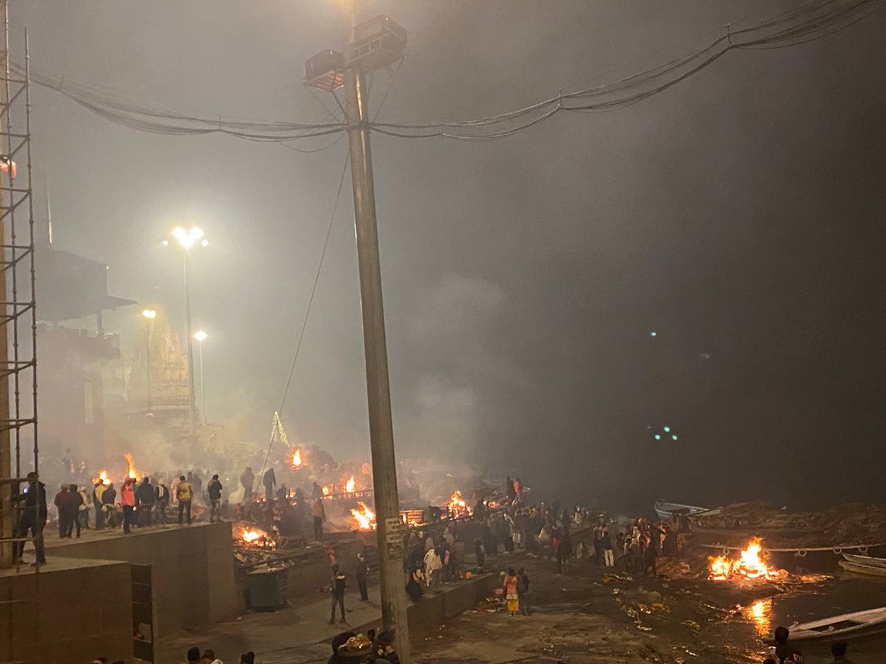 Я с девчонками разминулась на аарти, они пошли в отель без меня, но проскочили его, и вышли на Маникарнику. Ну а поскольку они думали, что возвращаются той же дорогой, то обалдели: недавно открытая чистая площадь вдруг вся оказалась в окне, дым разьедал лицо, кострами было занято все пространство.