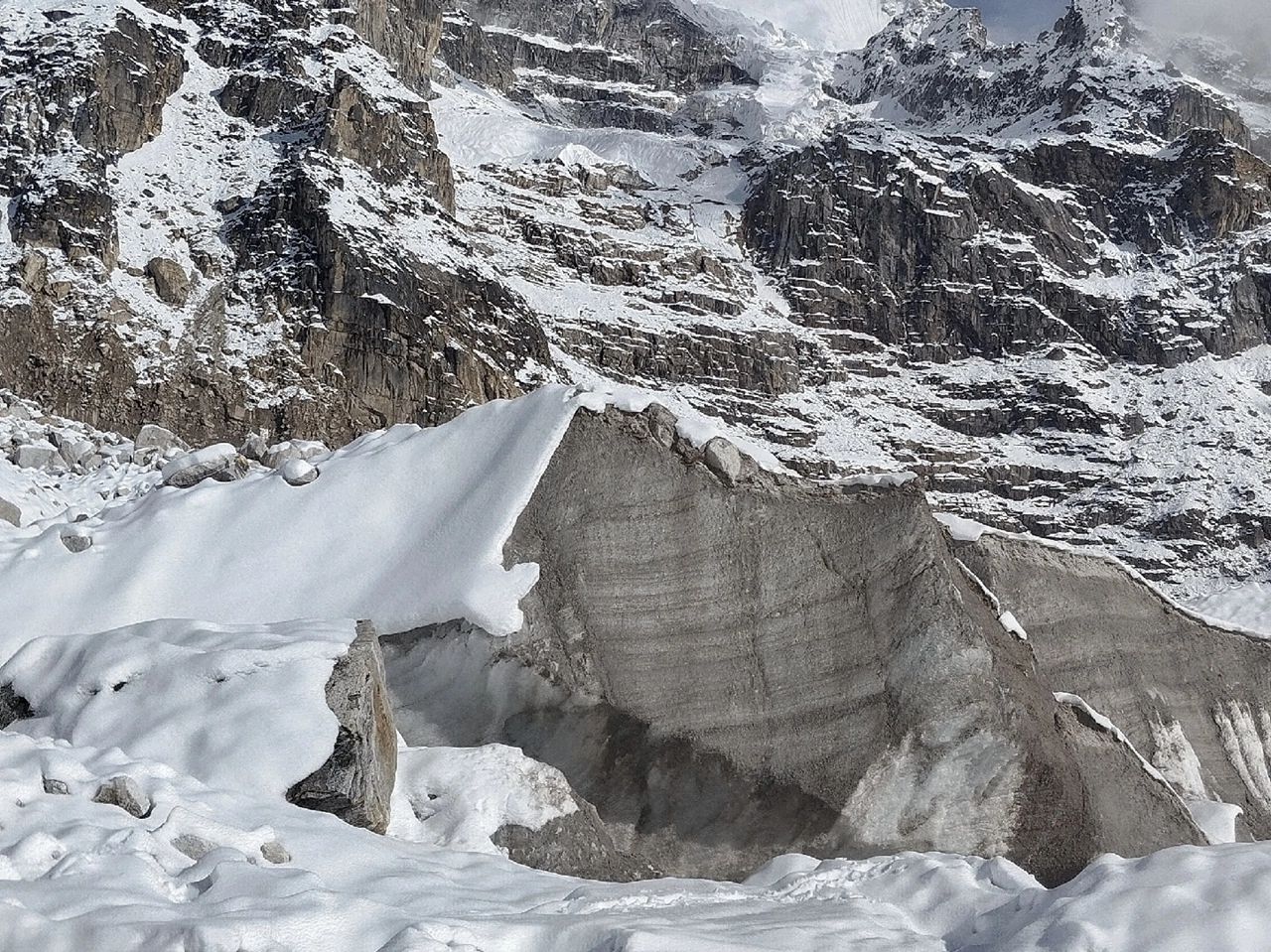 Немного фотографий от ребят из ледника Ялунг, Канченджанга Южная, по ним можно оценить трудности прохождения по леднику.