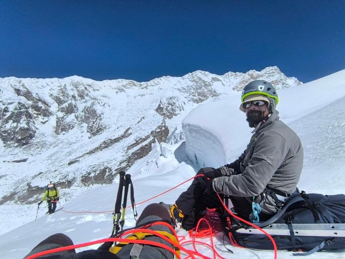 Ситуация сложная, так как передовой лагерь находится в двух днях пути по леднику от базового, пришлось установить промежуточный лагерь. Команде придется изрядно попотеть, чтобы забросить все необходимое в передовой лагерь.