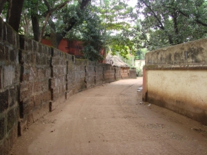 А потом надо выйти из храмовой калиточки налево до перекрестка, где пересечь оживленную широкую улицу и опять пойти налево, в сторону Пури. Да-да, по этой улице идут автобусы Пури-Бхубанешвар, и называется она Cuttack-Puri Road. Идёте по обочине, глотаете пыль и внимательно смотрите направо, чтобы не пропустить очаровательный и сказочный Муктешвар-Мандир, построенный в 10 веке.