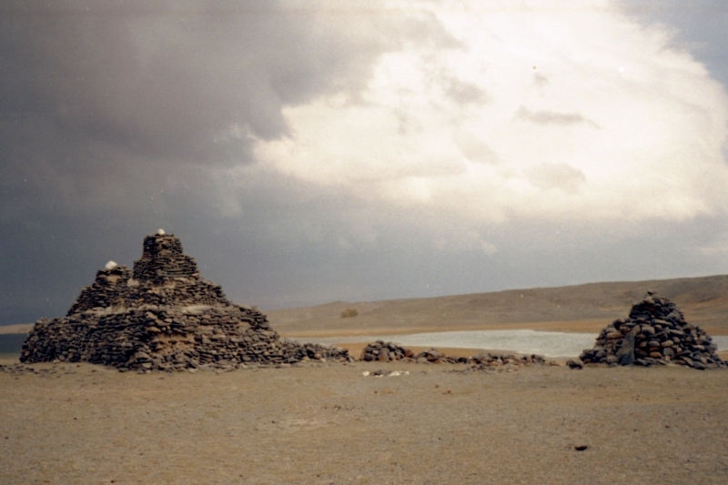 Что-то дальше моя память становится фрагментарной. Несколько последних дней я пытался систематизировать свои воспоминания, - безуспешно! Видимо, окончательно расслабился, и перестал быть готовым «реагировать на окружающие опасности», которыми заранее пугали. Необратимо стал кочевником. Дни пролетали мгновенно. Вот мы уже опять в Байян-Ульгие. Проехали свой же мусор, который аккуратно упаковали в пакеты и сложили на переполненной свалке неделю назад. Заехали в местный краеведческий музей. Для меня его специально открыли, но пыль протереть забыли. Пытались впарить пыльную волчью шкуру за 60 баксов. Не взял по двум причинам: т.к. собаков люблю, и не сам добыл. Впарили-таки альбом паршивого качества с красотами Байян-ульгийского аймака за 10 баксов. Смотрительница радостно этими зелененькими протерла половину экспонатов, включая пыльную шкуру и замечательную старинную конную упряжь, из чего я сделал заключение, что практически каждый музейный экспонат она готова была продать, дело лишь в сходной цене. Не стал лишать гостеприимный аймак его истории, и удалился. Заехали на местный базар. Здесь я впервые совершил обмен и увидал вожделенные монгольские тугрики. Оказывается, у монголов до кириллицы была своя письменность, и не на основе китайской, полностью своя. И «численность»тоже была своя - номинал банкнот-тугриков сдублирован монгольскими цифрами! Обмен проводил у сомнительных личностей подсев в их УАЗики. Так мои спутники советовали, а потом нехитрые арифметические расчеты показали, что я процентов на 15-20 вперед попал по сравнению с официальным курсом. Тут же закупил местные гостинцы: кумыс, сушеный сыр, вяленое мясо, еще какие-то сувенирчики. Оставил тугриков на прощальный обед в ресторане со своими попутчиками (на вечер мне принимающая сторона прощальный ужин готовила). Оказалось, что в Байян-Ульгие, кроме уже описанного мною ресторана, принадлежавшего Канату) есть еще один – турецкий. Я привел туда своих друзей. Кафар сильно переживал, что он не сильно в ладах с застольным этикетом, но вполне достойно справился с ножом-вилкой. Когда наступил момент расплаты – я вновь заговорил с официанткой по-турецки, она побежала за хозяином. Ба, да это же тот самый турок-экстремал, бросивший Германию ради Монголии! В результате – еще чай с баклавой от хозяина, беседа ни о чем и... отказ взять деньги! Иногда выгодно быть пантюркистом! Раздал остатки тугриков Кафару и Боте.