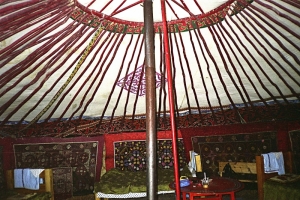 Приехали мы на базу уже поздно ночью. Привели меня в потемках в мою юрту. На простой вопрос: «Где сортир?», ответили: «А везде!», широко обведя степь ладонью. Две нижеприводимые фотки сделаны на следующее утро. На них можно видеть сдвоенную юрту (кухня-столовая) и другую, мою, юрту (слева), а также ее внутреннее обустройство. Железная труба на переднем плане – от печки-буржуйки. Положили мне на кровати (их три в моем распоряжении оказалось) три толстенных и невесомых верблюжьих одеяла. Дров возле печки подсыпали. Настала моя первая монгольская ночь. Лучше в жизни я редко спал! Ночью только однажды проснулся от холода, подбросил дровишек, собрал все три одеяла себе на кровать. И выглянул в степь до ветру. Господа! Звезды на небе, оказывается, разноцветные!!!