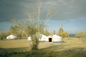 Для моей первой монгольской ночевки Канат предложил мне на выбор свой вполне евро-отремонтированный, довольно комфортный, трехэтажный дом со всеми удобствами, к которому примыкали его ресторан и офис его же турфирмы. Либо ночевку на его турбазе в юртах. Кто уже немножко меня читал, поймет, что я однозначно юрты выбрал. Хотя и предложение у него дома поселиться я высоко оценил: это знак гостеприимства, ничего дополнительно платить не пришлось бы. Но он хотел «загладить» мои мытарства на границе, за которые уж никак сам отвечать не должен был. Но гость выбрал юрты – значит юрты. Поэтому, обговорили мою будущую поездку за обильным праздничным ужином в его ресторане. Тоже подарок фирмы. Я все волновался, что денег до сих пор не поменял. Видно, сильно хотел пресловутые «тугрики» в глаза увидать. Заранее сообщаю, что увидал я их (обменял какие-то свои копейки на Байян-Ульгийском базаре) только на десятый день моего пребывания в Монголии, и то – после моих настойчивых просьб. Все остальное обеспечила фирма, и редкие покупки в степи носили какой-то «игрушечный» характер: мне, например, дарили водку или барашка, а я взамен дарил какие-то русские деньги или чаще сувениры (рубли – тоже, скорее, сувенир). Сбылась моя мечта: я видел страну, где деньги – это что-то третьестепенное! Это второе радикальное отличие Индии и Монголии после вегетарианства – мясоедения.