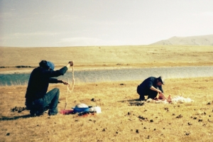 Кроме того, с нами едет водитель, Кафар, который и водитель, и штурман, и эксперт по рыбалке. Оказалось, что первыми двумя профессиями он в совершенстве владеет, третьей – постольку, поскольку других рыболовов по разным местам возил, и где клюет – должен знать. По поводу штурманства. GPSа у нас не будет, да и тогда он лишь пятнами Монголию покрывал, сотовая только внутри городов действовала. Еще заметим, что дорог нет в принципе, даже грунтовки – редкость. Проводов вне города – никаких. Стационарных бензозаправок, ларьков, едален – нет, и не было никогда. Редкие семьи кочуют, и если что с машиной случится – надо самим до людей добираться, но Кафар знает как и куда. Если попал таки в беду и остался в одиночестве, но увидал пасущихся лошадей, яков или верблюдов – считай, спасен, они до хозяев сами довезут. Если баранов – тоже не беда, их больше нескольких суток без присмотра не оставляют. На ночь обложился ими – и не замерз. Резать чужих тоже можно при ЧП – потом сочтетесь. Носи огонь в кармане – сухая трава и кизяки всюду есть. На дым обязательно подъедут... По Солнцу и звездам – если сумеешь, двигай туда, где последние юрты видал. Вещи бросай, иди налегке, никто не тронет. Воду бери и не давай ночью замерзнуть... Пару ракетниц при себе держи, но зря не играй – со всех сторон поедут, кто увидит. И еще масса того, о чем никогда современный человек не задумывается.