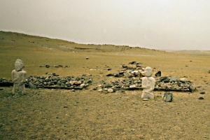 Я уже писал, что не склонен верить в «непознанное». То есть изначально скептически настроен против существования всяких «аномальных зон», «мест силы», всяческих входов в Беловодье и пр. Но вот удивительная вещь случилась со мной в месте, на которое меня привезли посмотреть на т.н. «каменных баб». Это не бабы вовсе, сейчас считается, что это места захоронений древних пратюркских военачальников. На фото видны могилы, которые не производят впечатления сильно древних, как будто их недавно заново сложили. Зато истуканы-балбаны (откуда русское слово болван пошло) – действительно впечатляют. Тем более, что у большинства подобных им с приходом в Монголию буддизма, снесли головы. Погуглив хорошенько дома после поездки, я нашел, что это место расположено на западном берегу озера Хурган, и считается монгольским аналогом наземных рисунков на плато Наска. Вот выдержка из инета: