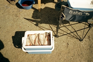 Вечер посвятили засолке улова. Втроем до ночи колупались. Результат, который поедет в Москву, на фото 2. В том, что я его провезу (будет отдельный рассказ), я уже практически не сомневался. Как и в том, что паразитам с российской таможни в Ташанте это в любом случае не достанется: скорее ногами в грязь втопчу! А пограничному псу Верному засоленную рыбку все равно есть вредно!