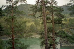 Проехали столицу Алтайского края Барнаул. Городок еще спал, и я после ночного перелета подремывал. Поэтому, толком не разглядел города. Зато когда к Оби подъехали... Редкой красоты и величавости река, да еще с утренней дымкой, рыбьими всплесками... Жаль, аппарата тогда с собой не взял, думал рядовая остановка «мальчики – направо». С тех пор всюду аппарат с собой носил. Заурядную пленочную мыльницу. Не фотограф я, извините, но кое-что поснимал. Дальше будут фотки, не судите за качество. Тогда еще на пленку снимали, я уж потом сканировал готовые снимки.