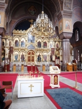 Предварительно найдя на просторах инета советы добрых людей, где можно бесплатно припарковаться в городе с практически полным отсутствием бесплатных стоянок, мы оставили машину на пристани в шаговой доступности от Собора Успения Пресвятой Богородицы (был построен по проекту русского архитектора А. М. Горностаева в псевдовизантийском стиле в 1868 году), правда, не сразу нашли нужный поворот, а приехав на пристань, пришлось долго ждать, пока освободиться хоть одно место. Стоянка там бесплатная в течение 2-х часов (нужны парковочные часы). Ездит полицейская машина и следит за порядком.