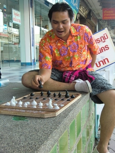 Не очень распространенный вариант правил макрука – игра до первого шаха. Кто поставил шах, тот победил. В конце статьи предлагаю следующую фотографию - тайский игрок показывал мне, как он виртуозно владеет конем:
