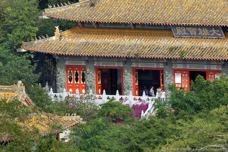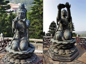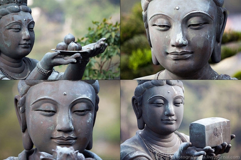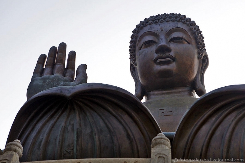 Один из самых больших в мире сидящих Будд — гонконгский 250-тонный бронзовый Бог, который восседает на цветке лотоса — символе чистоты, ясности мысли и безмятежности. Лицо его, в отличие от собратьев, обращено не на юг, а север — в сторону Китая.
