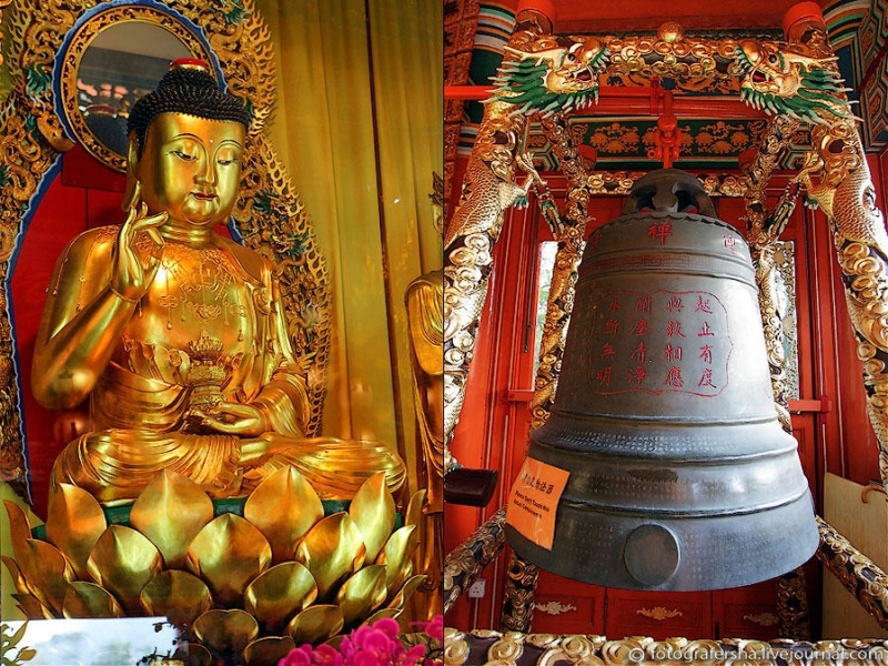 А еще здесь в течение всего дня каждые семь минут звенит колокол. Получается 108 раз — сакральное число для буддистов, содержащее в себе 9 дюжин и означающих избавление от 108 бед. Управляется электронно.