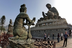 Большая бронзовая статуя Будды, расположенная на острове Лантау, символизирует гармонию отношения между человеком и природой, между людьми и религией