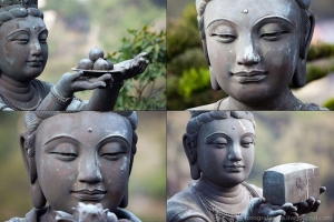 Будду окружают шесть бронзовых статуй Бодхисаттвы (буквально — существо, стремящееся к пробуждению)