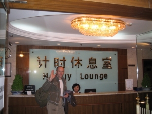 Из Киева мы летели,примерно,9 часов.Прилетели по-нашему поздно ночью,по их,по-китайски,где-то в 5 утра.Сравочная работает с 8-ми утра.Но ,если очень захочется спать,то попытайтесь найти отель на территории вашего терминала самостоятельно.Или сидите в зале ожидания.:) В номере отеля имеются разовые тапки,полотенца,зубные щётки ,паста и ...расчёсочки.И чайник.( А багажа при вас не будет).И ЗАВТРАКОМ запастись лучше заранее ...Хотя можно купить и в единственном открытом кафе за дорого,кажется, даже за доллары.