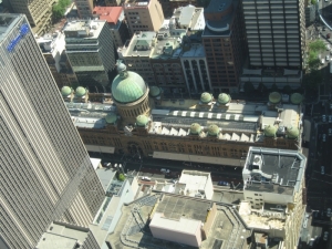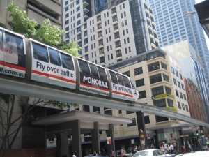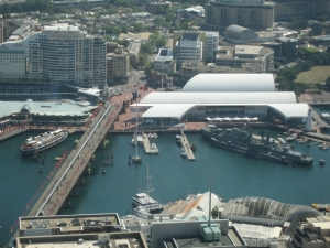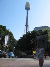 Муж спал в самолёте.Я в самолётах никогда не сплю и это позже сыграло со мной злую шутку.) Оставив вещи в отеле,мы СРОЧНО сбегали купить адаптор и целую авоську продуктов на вечер.И кофе.И отправились ...обедать в "Сиднейскую башню" .Такой туристический ресторанчик на башне.Баашня вертится,часа за полтора...примерно ...делает полный круг.Можно сразу увидеть оба порта,Сиднейскую оперу,Гайд парк...опять же.)Монорельсовую дорогу и много чего ещё.С высоты башни.