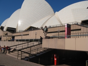 После обеда ,осмотрев парк мы двинули в сторону порта и оперного театра.Сначала мы долго искали вход.Обойдя здание третий раз и не найдя ни единой двери, мы впали в отчаяние.)Тем более,что Сиднейская опера-это не один театр...Это ,если не ошибаюсь,5 театральных залов,в том числе и знаменитый оперный зал, плюс кафе.В течении дня,примерно до 16-ти часов в этот комплекс водят экскурсии.Вечером можно попасть на концерт и представление.После того,как добрые люди,видя наши мучения,сказали,что вход в комплекс через ближайший ...подземный переход,мы записались на эускурсию...сразу же.И вот тут -то как от снотворного ,мне резко захотелось спать-глазки сами закрывались,а тельце норовило упасть на что-нибудь...Муж сказал,что на сегодня экскурсия окончена, и отволок меня в отель спать до утра.