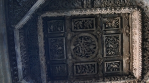 Внутреннее убранство поражает красотой колонн и потолочным декором. Для осмотра потолка в центре храма установлен мощный прожектор, которым периодически его освещают (когда подходит экскурсовод с группой). Храм действующий.